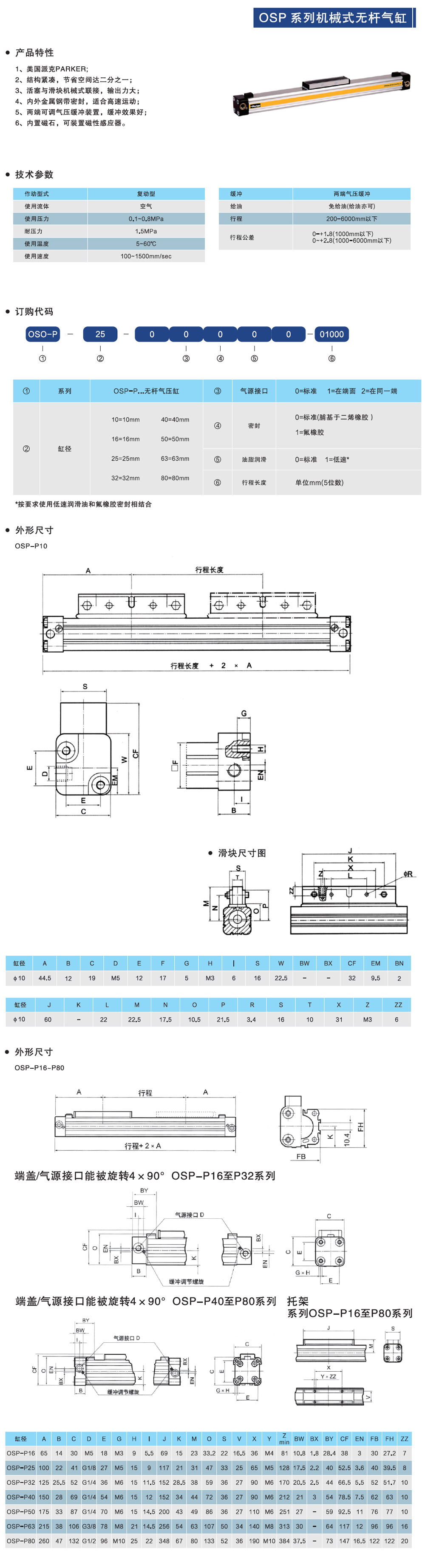 源自德国,OSP-P标准型无杆气缸模块化设计,内外金属钢带的密封系统;具有性能牢靠,维护和修理简单、重量轻、本地组装简单的优点。派克无杆气缸采用的金属密封结构,实现了超长的使用寿命(8000km以上),气缸端盖可4x90°旋转安装,内置可调气缓冲,具备高牢靠性和运行性能稳定性。美国parker杆气缸最长行程可达10M,安装简单,承受环境温度120℃,运行速度最快可达10M/S,最慢可达0.005M/S,在低速运动的同时,没有爬行现象,优越的快捷性决议了选择的便利,进而应用的行业特别多,所以可以在自动化等领域发挥的特长和的性能。